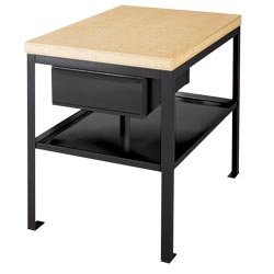 Choose durable, multi-layer 13/4" thick Shop-Mate top or 15/8" thick white leather-texture plastic laminate top to best fit your needs.